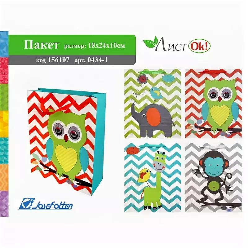 Пакет подарочный J.Otten 0434-1 "Зигзаги со зверюшками" 18*24*10см ассорти 156107