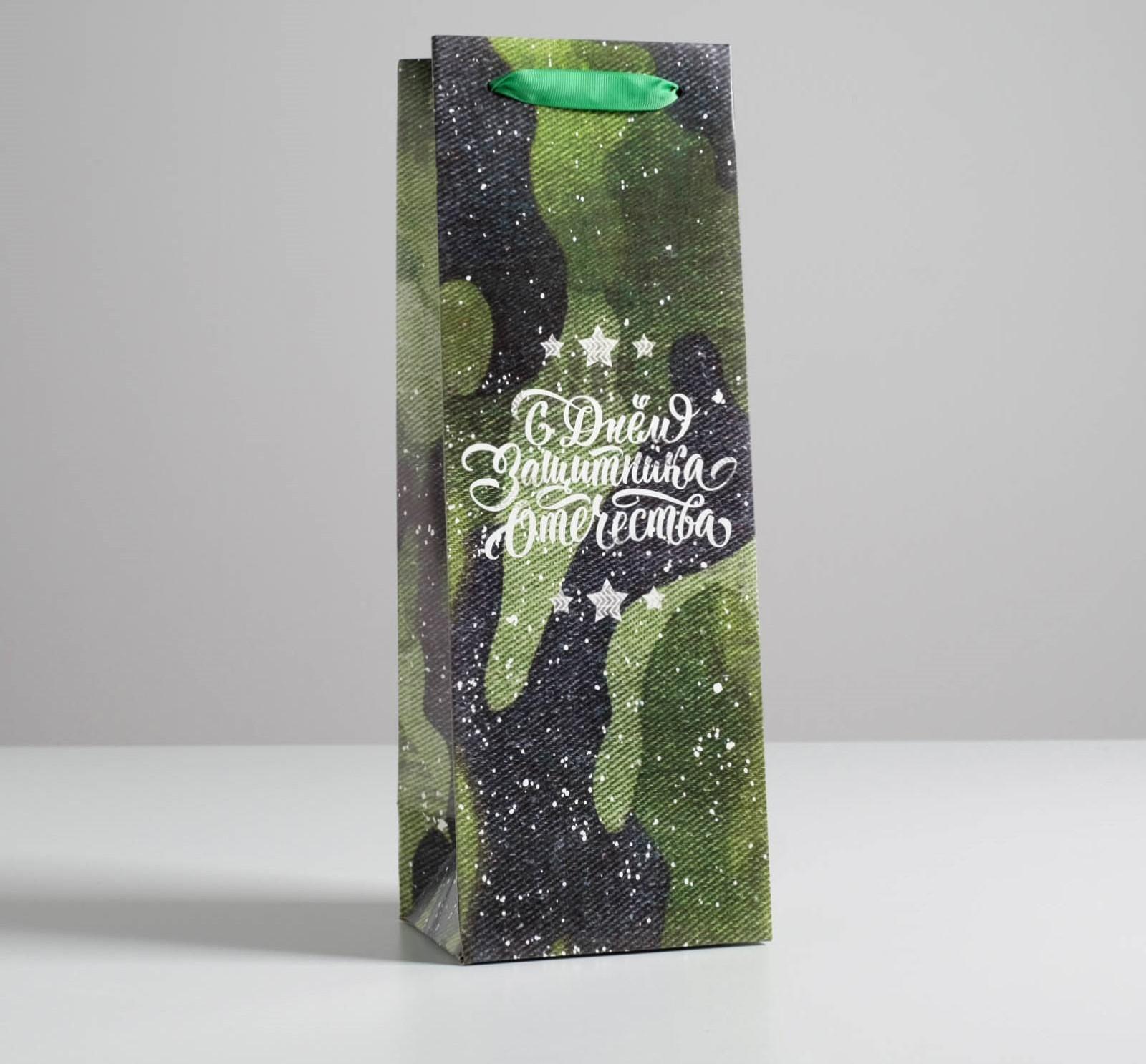 Пакет подарочный под бутылку Сима 2936758 "С Днем защитников Отечества" 36х13х10см