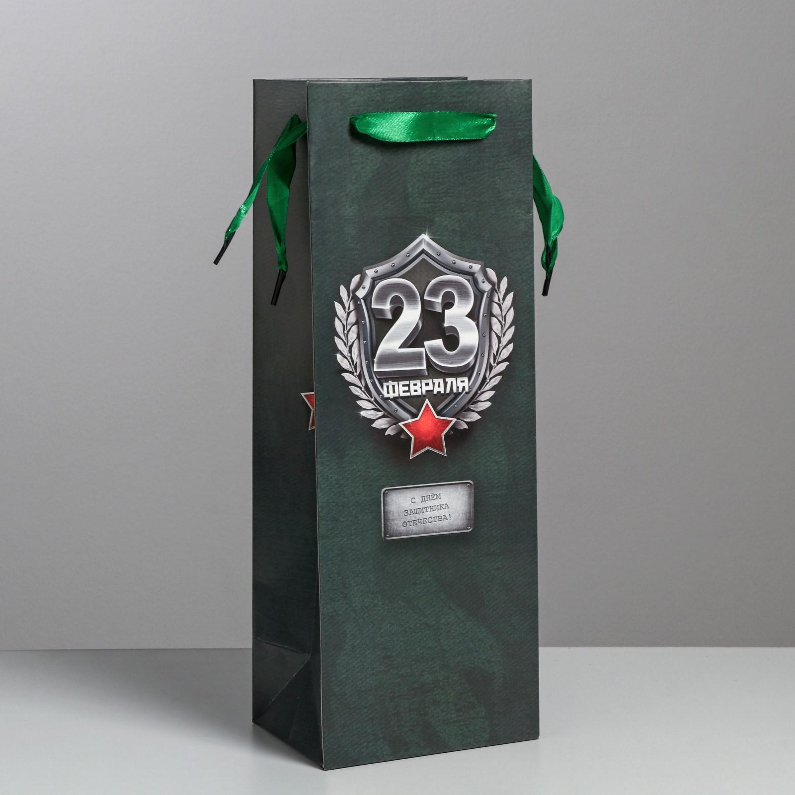 Пакет подарочный под бутылку Сима 2936762 "23 Февраля" 36х13х10см