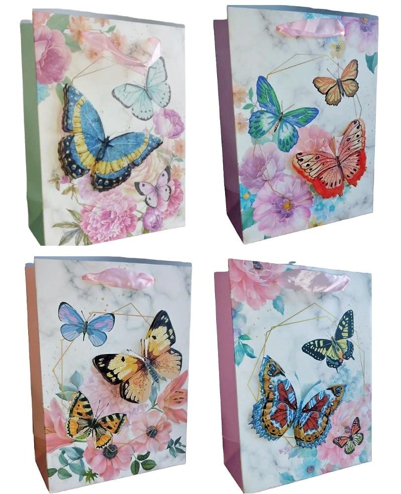 Пакет подарочный МШ П11123 "Люкс" Бабочки, накладной элемент, с ручками, ассорти 260х320х100мм