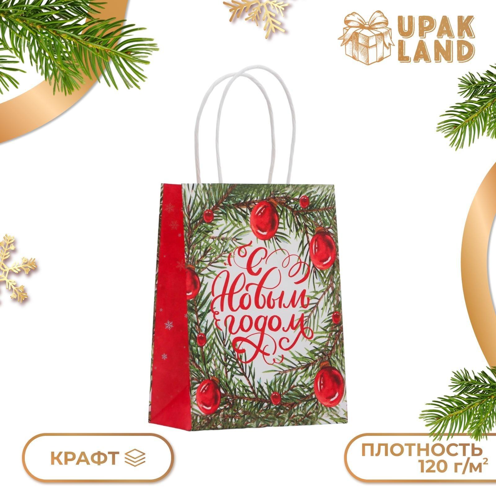 Пакет подарочный 10576029 "Елочные игрушки" 16х12х6см крафт