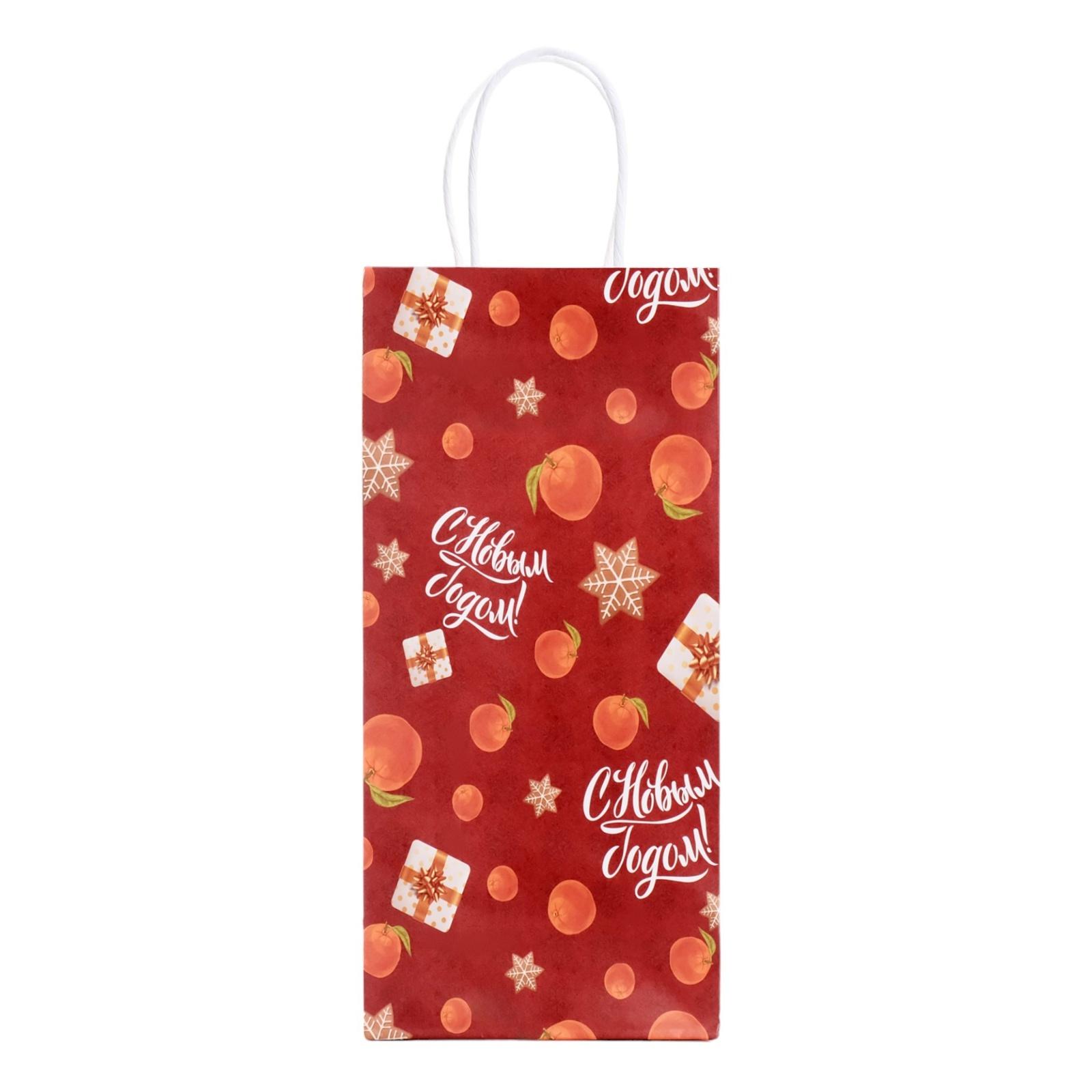 Пакет подарочный под бутылку Сима 9541192 "С Новым годом" 14*18*32см