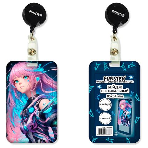 Бейдж Funster 238840 "Аниме" вертикальный, размер 85х54мм, слайдер, клип-рулетка