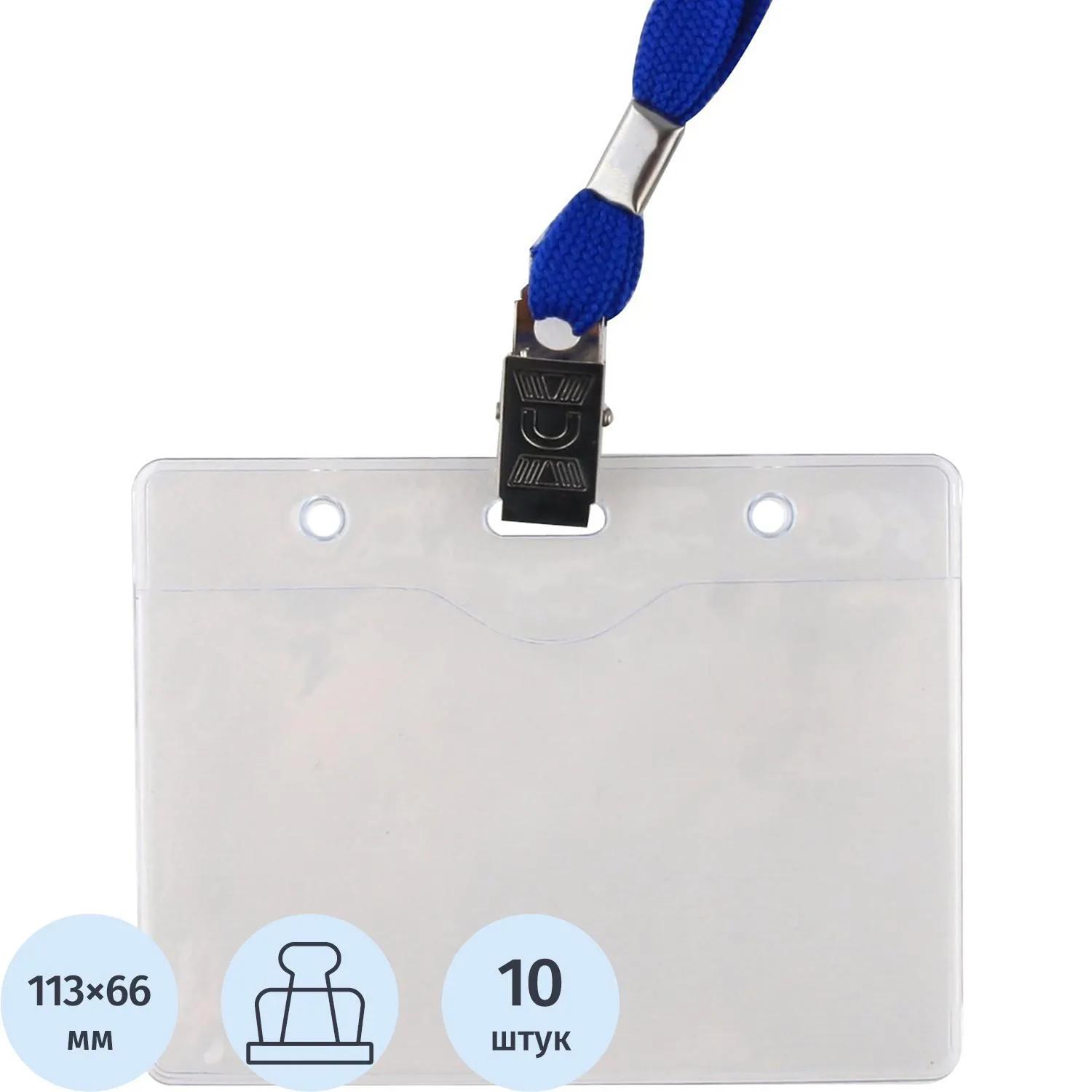 Бейдж Attashe Economy 120х87мм металл зажим/тесьма синий 1384121