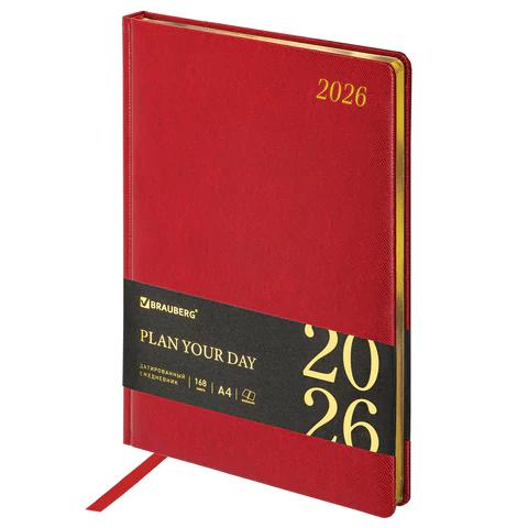 Ежедневник А4 2026г. Brauberg 117246 "Iguana" красный, кожзам, золотой срез