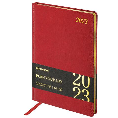 Я Ежедневник А4 2023г. Brauberg 113912 "Iguana" красный, кожзам, золотой срез