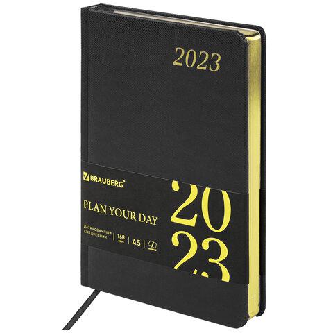 Я Ежедневник А5 2023г. Brauberg 114029 "Iguana" черный, кожзам, золотой срез