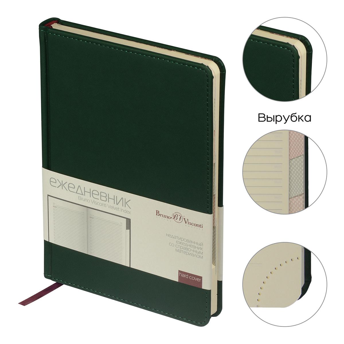 Ежедневник А5 Bruno Visconti 3-369/18 "VELVET INDEX" темно-зеленый, с вырубкой