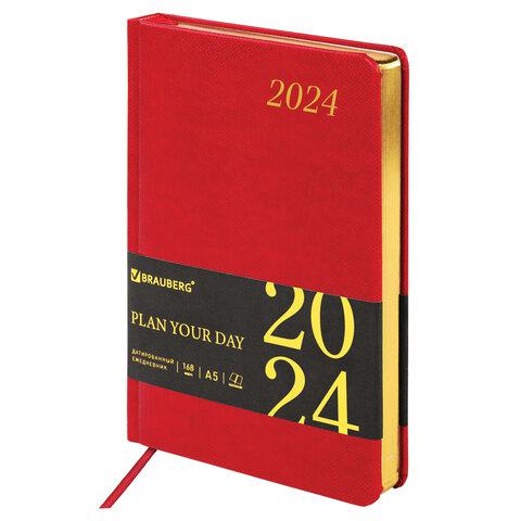 Ежедневник А5 2024г. Brauberg 114849 "Iguana" красный, кожзам, золотой срез