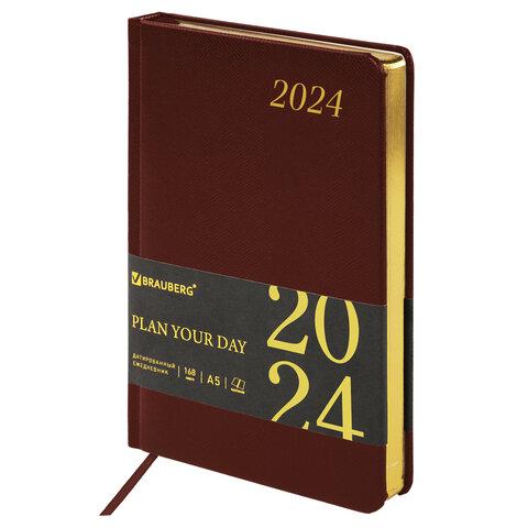 Ежедневник А5 2024г. Brauberg 114851 "Iguana" коричневый, кожзам, золотой срез