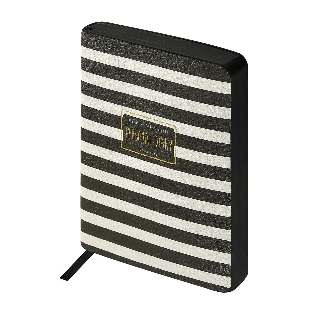 Ежедневник А6 Bruno Visconti 3-742/02 "BLACK&WHITE. Полоски" линия, кожзам, ляссе, черный обрез