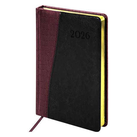 Ежедневник А5 2026г. Brauberg 117046 "Cayman" бордовый/черный, кожзам, золотой срез