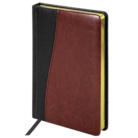 Ежедневник А5 Brauberg 123399 "Cayman" черный/коричневый, кожзам, золотой срез