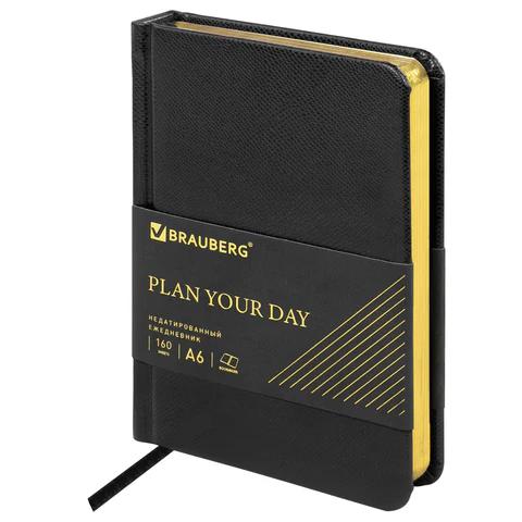 Ежедневник А6 Brauberg 125104 "Iguana" черный, кожзам, золотой срез