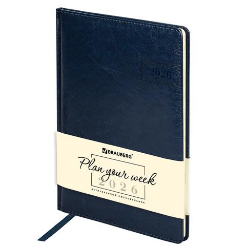 Еженедельник А4 2026г. Brauberg 117157 "Imperial" синий, кожзам, бежевый блок