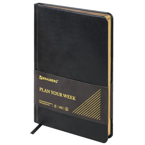 Еженедельник А5 Brauberg 114478 "Iguana" черный, кожзам, золотой срез
