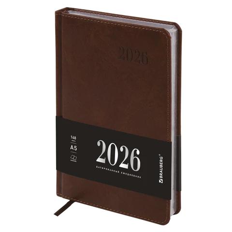 Ежедневник А5 2026г. Brauberg 117511 "Impression" коричневый, кожзам, серебристый срез
