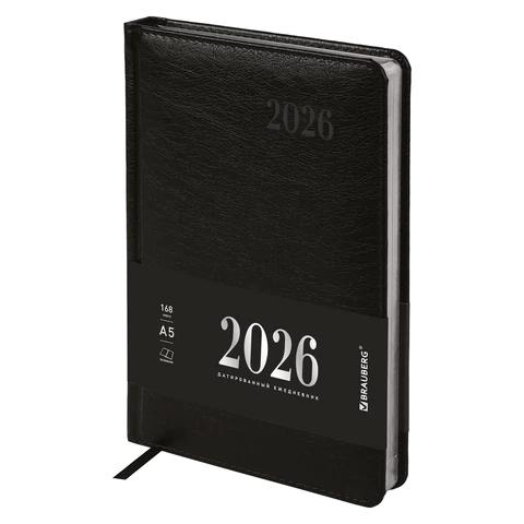Ежедневник А5 2026г. Brauberg 117510 "Impression" черный, кожзам, серебристый срез