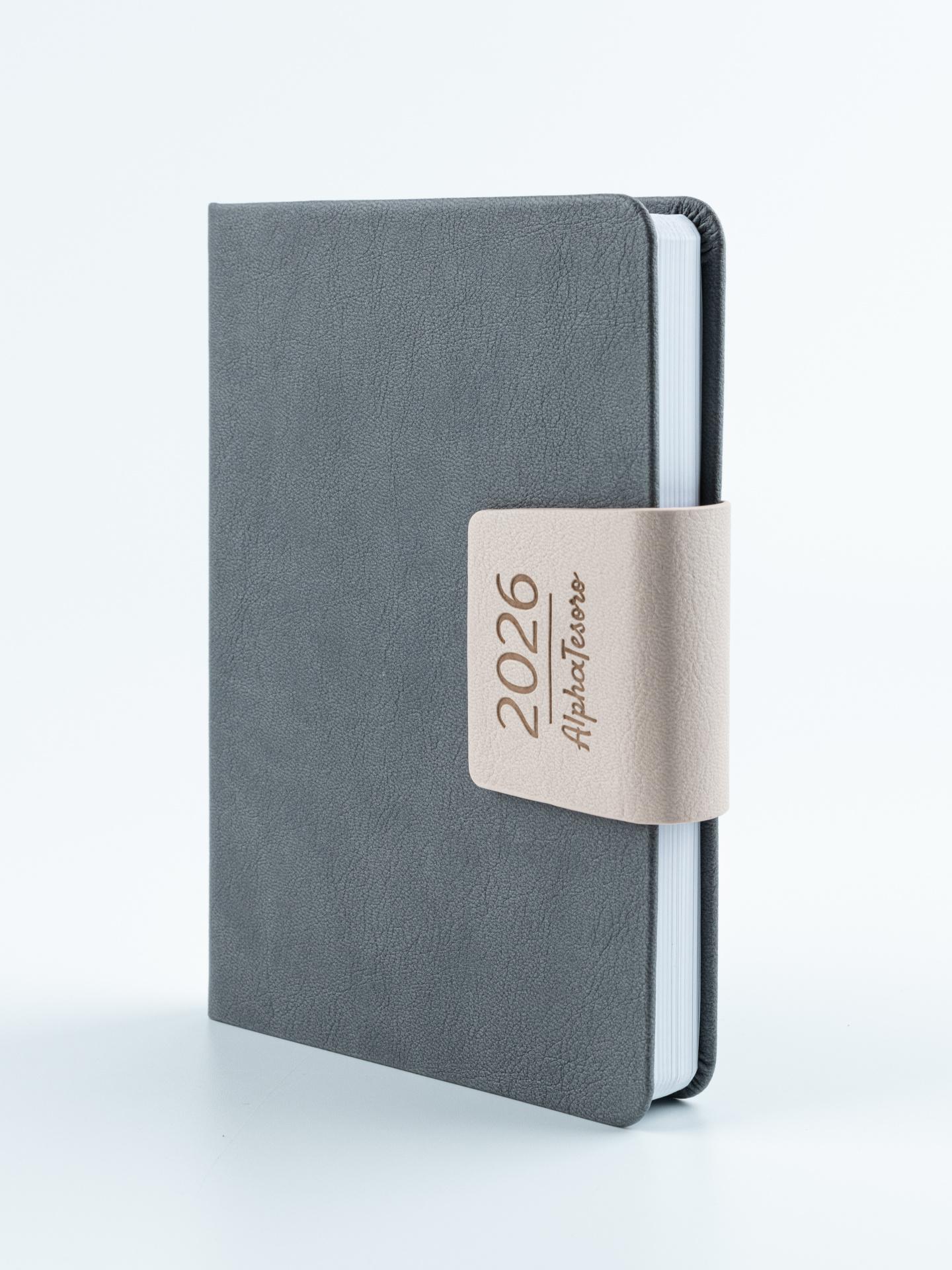 Ежедневник А6+ 2026г. Альфа-Тренд 310132 "Милан" серый+светло-бежевый клапан, тв. переплет, ляссе