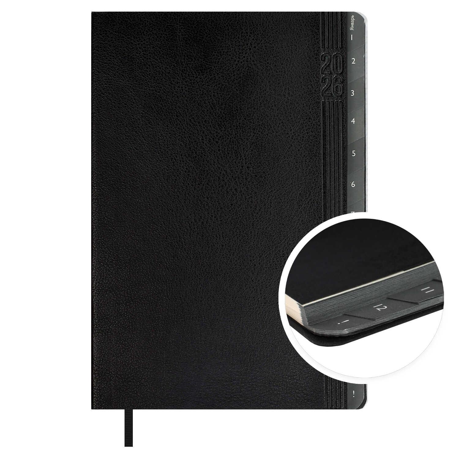 Еженедельник А5 2026г. Феникс 70334 "БУЙВОЛ" черный, кожзам, 80л.