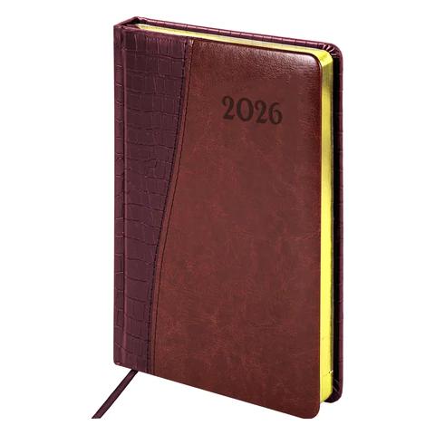 Ежедневник А5 2026г. Brauberg 117044 "Cayman" бордовый/коричневый, кожзам, золотой срез