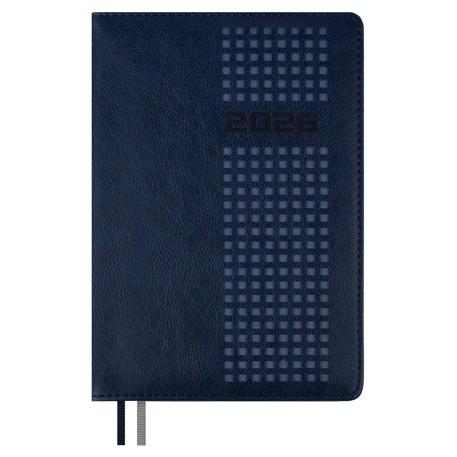 Ежедневник А5 2026г. Феникс 70216 ШЕВРО синий, кожзам, 176л., ляссе