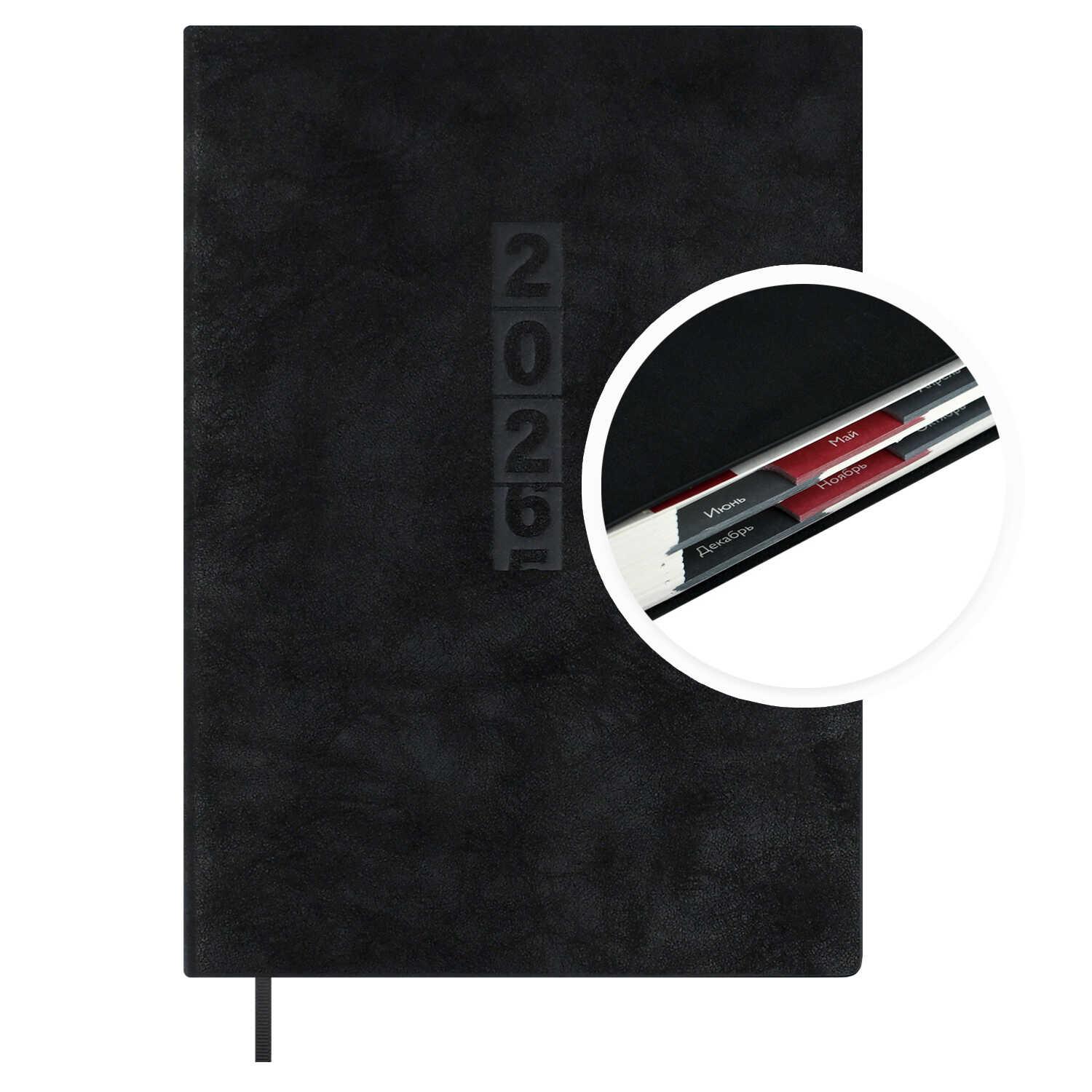 Ежедневник А6+ 2026г. Феникс 70297 ТИВОЛИ ГЛОСС черный, кожзам, 176л. с вырубкой