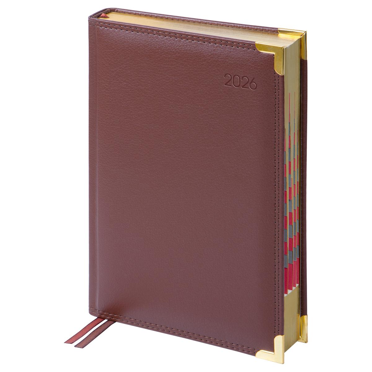 Ежедневник А5 2026г. Delucci DD4_90502 коричневый, фактурная кожзам, золотой срез 184л. 381771