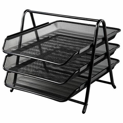 Лоток горизонтальный 3-х ярусный Brauberg 231952 "Germanium" металл, черный