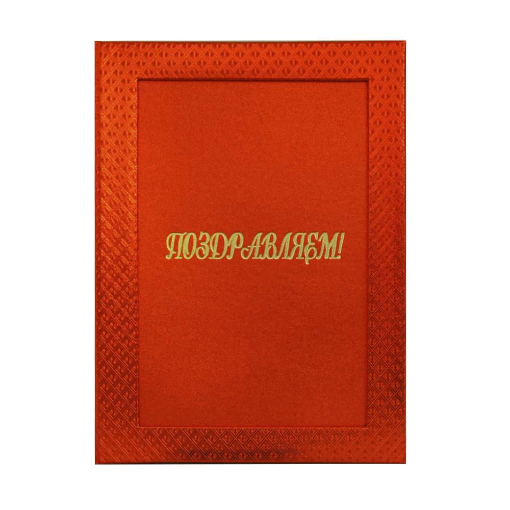 Папка адресная "Поздравляем" балакрон А4 "С рамочкой под фото" пухлая) ромб красный ПМСР4007-142
