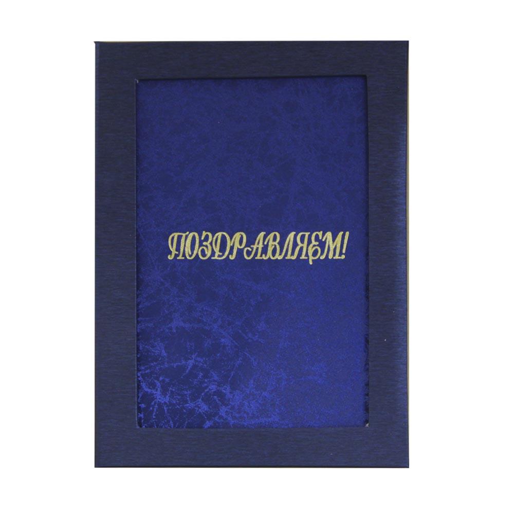 Папка адресная "Поздравляем" балакрон А4 (пухлая) с рамочкой под фото шелк синий ПМСР4007-104
