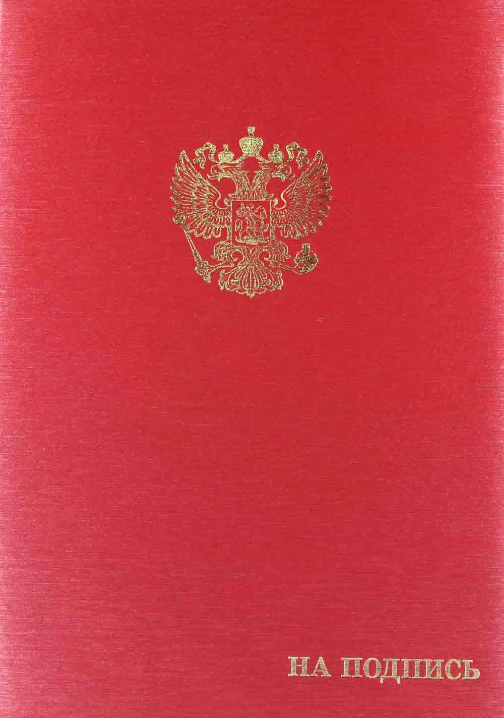 Папка адресная "На подпись + Герб РФ" А4 балакрон (пухлая)шелк красный с ляссе ПМ4013-103л