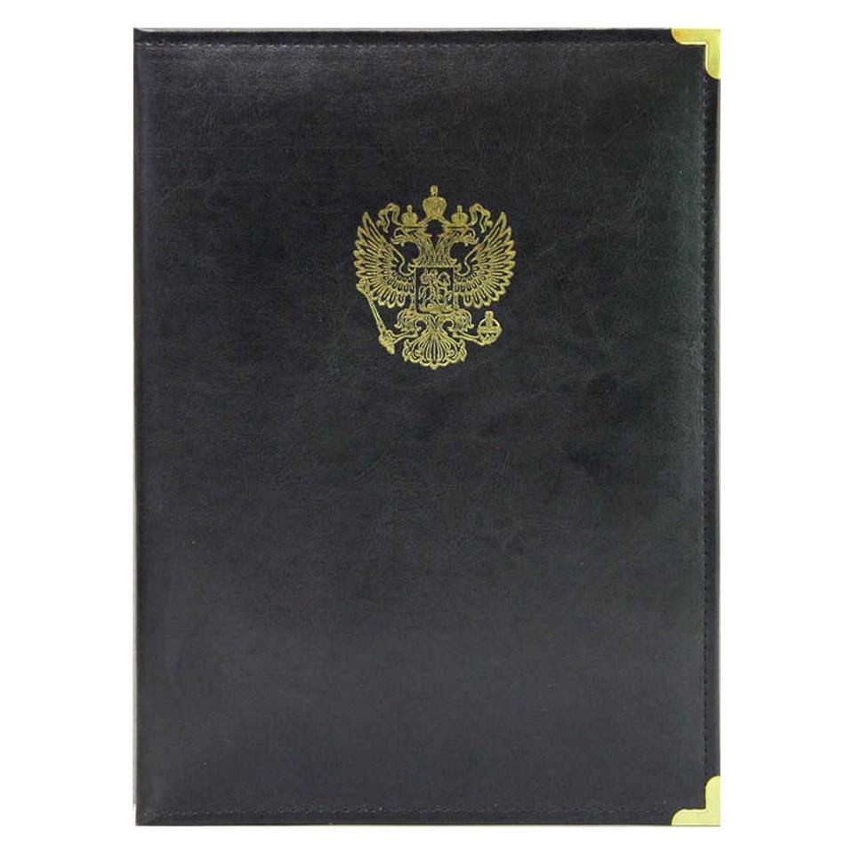 Папка адресная "С Российским орлом" А4 иск кожа пухлая прош по краю черная 2уголка ПКЗГ4002-303-у2 (