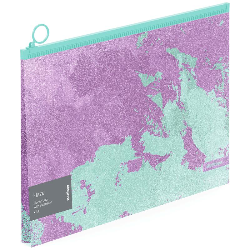 Папка на молнии А4 Berlingo ZGx_A4924 "Haze" эффект блесток, 180мкм, сиренево/мятн с рисунком 334658