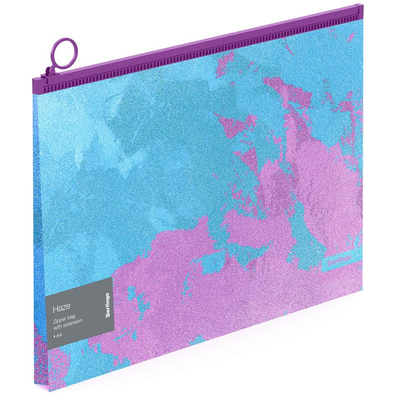 Папка на молнии А4 Berlingo ZGx_A4921 "Haze" эффект блесток, голубая/сирен 180мкм, с рисунком 334655