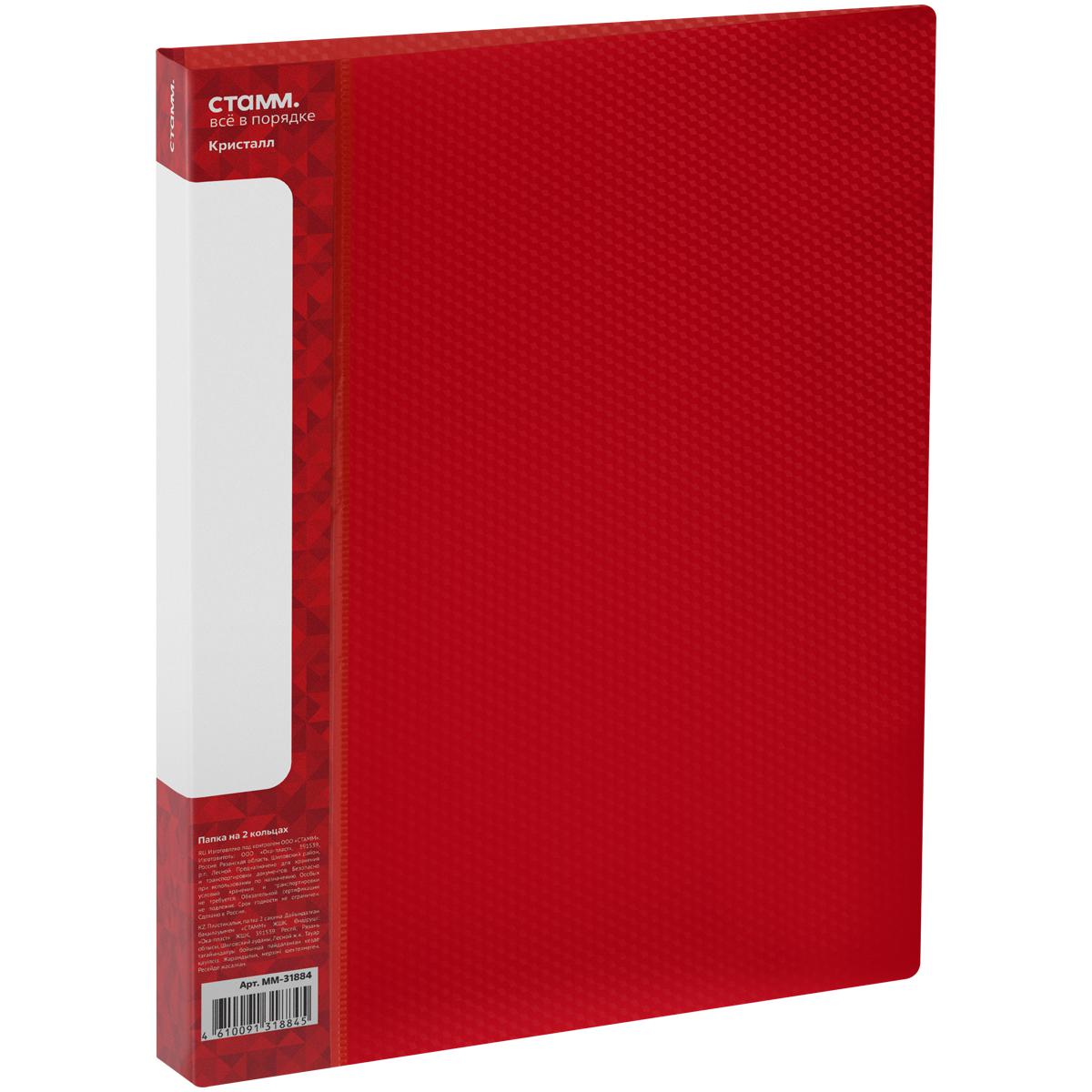 Папка зажим 2 кольца 40мм А4 Стамм ММ-31884/31885/31886 "Кристалл" ассорти 700мкм