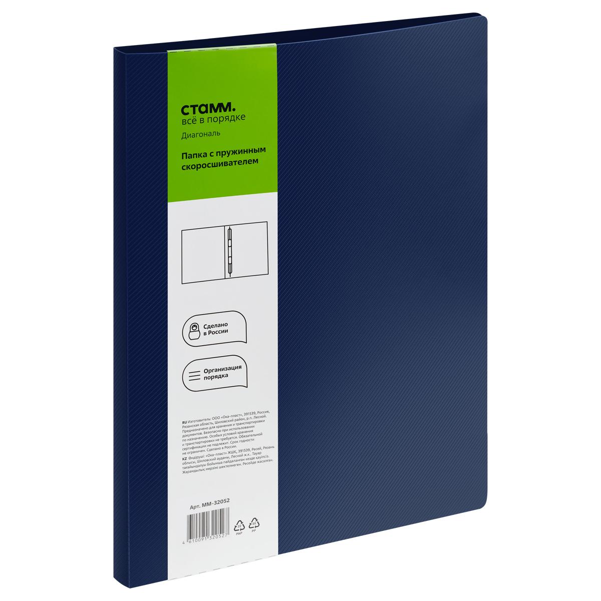 Скоросшиватель А4 Стамм ММ-32052 "Диагональ" синяя (сапфир) 17мм, 700мкм пластик 377833