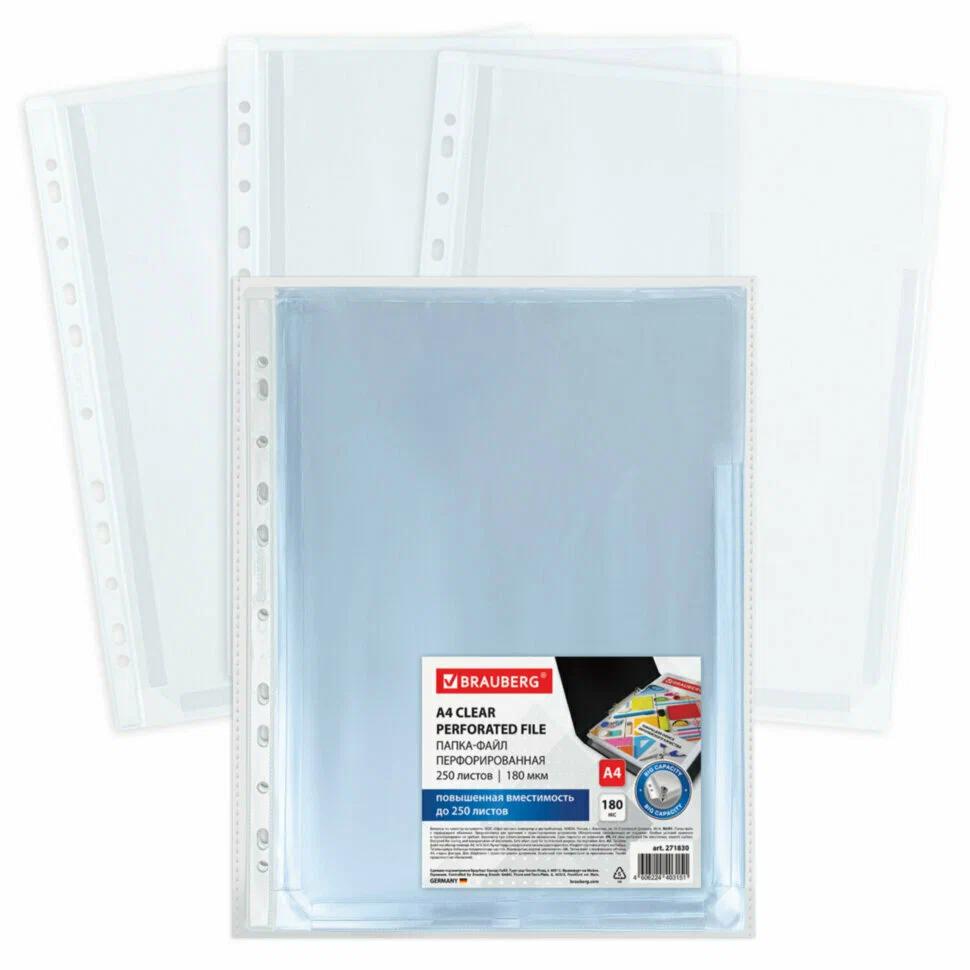 Вкладыш А4 перф. 180мкм BRAUBERG перфор повыш вмест до 250л ПВХ 271830