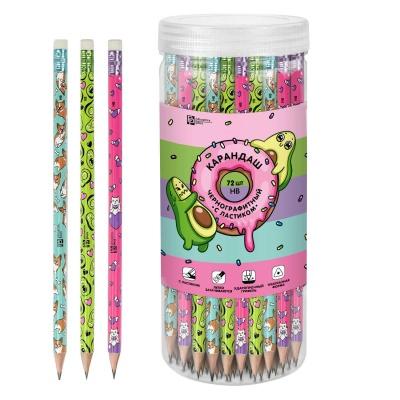 Карандаш ч/г Феникс 57469 HB с ластиком "Корги, Авокадо, Кот" трехгранный