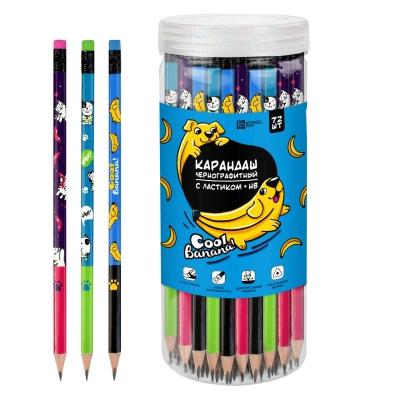Карандаш ч/г Феникс 57470 HB с ластиком "Кот, Собака, Бананы" трехгранный