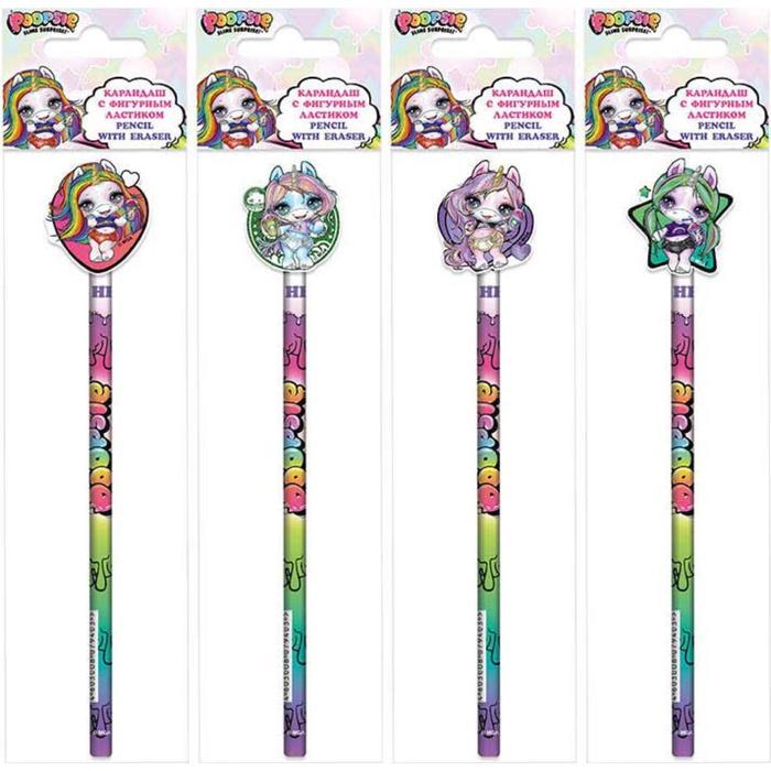 Карандаш ч/г Академия Групп PSHB-US1-1320 с фигурным ластиком Poopsie