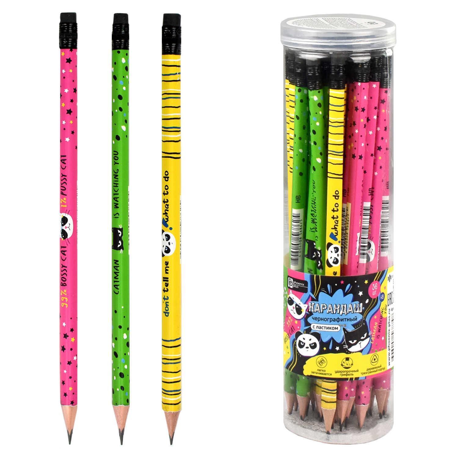 Карандаш ч/г Феникс 63683 HB "Твой месседж" с ластиком, ассорти