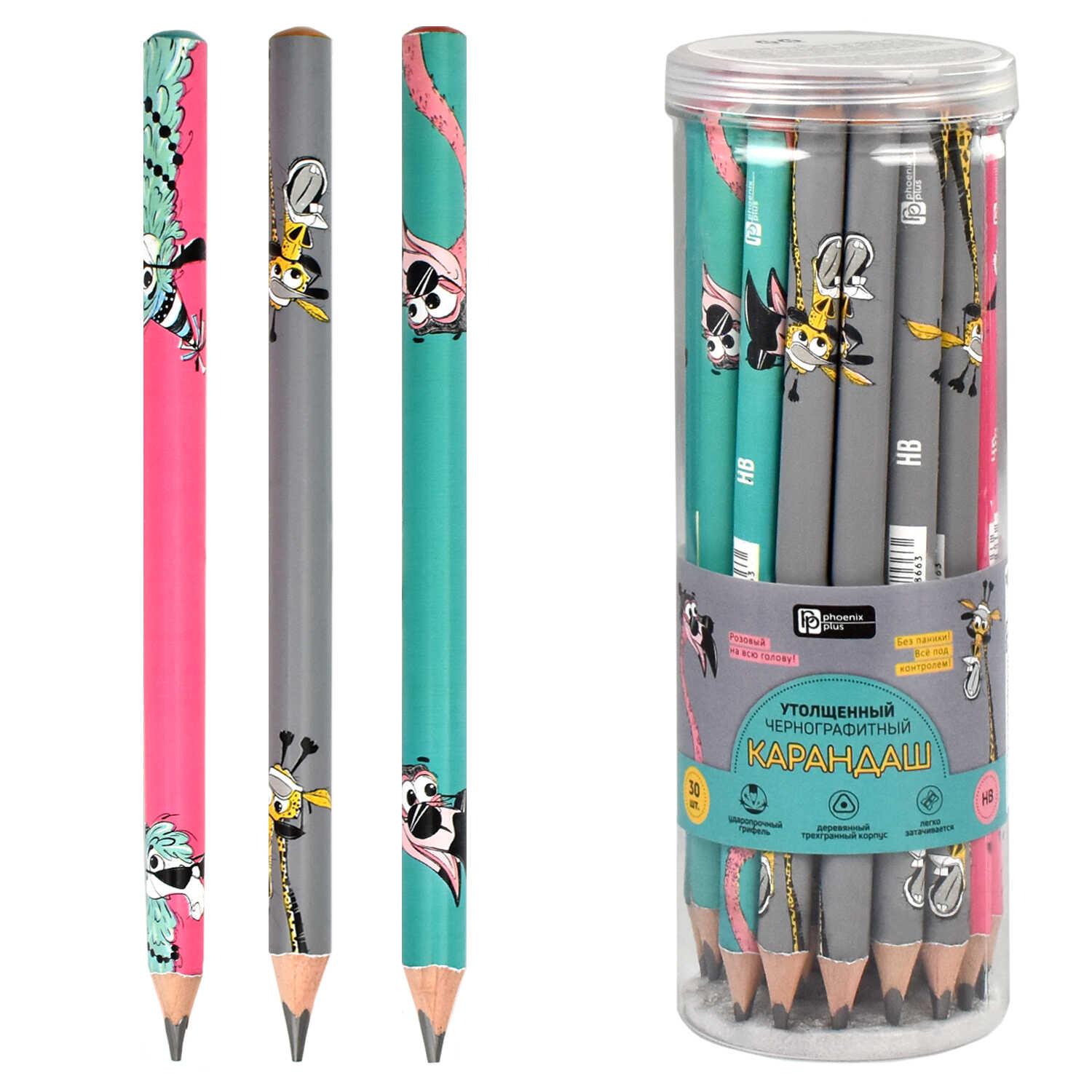 Карандаш ч/г Феникс 63687 HB "Экзотичные друзия" утолщенные, ассорти