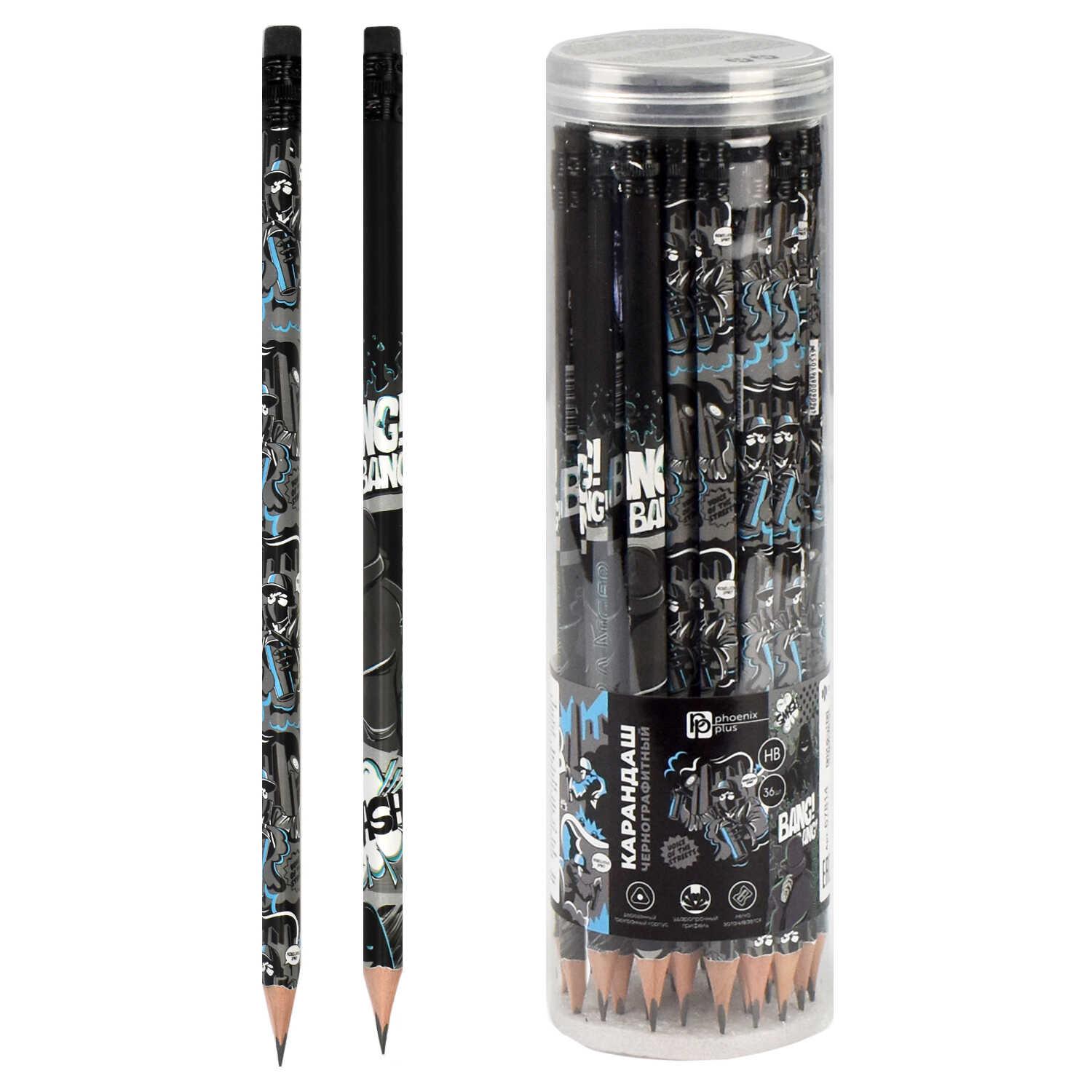 Карандаш ч/г Феникс 67814 HB "Бунтарский дух" с ластиком, ассорти