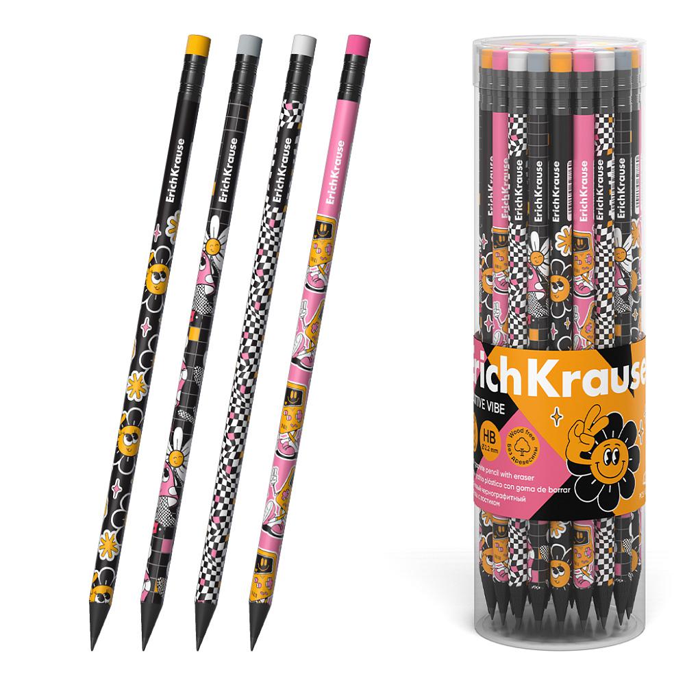 Карандаш ч/г ErichKrause 62776 HB Positive Vibe, с ластиком, круглый