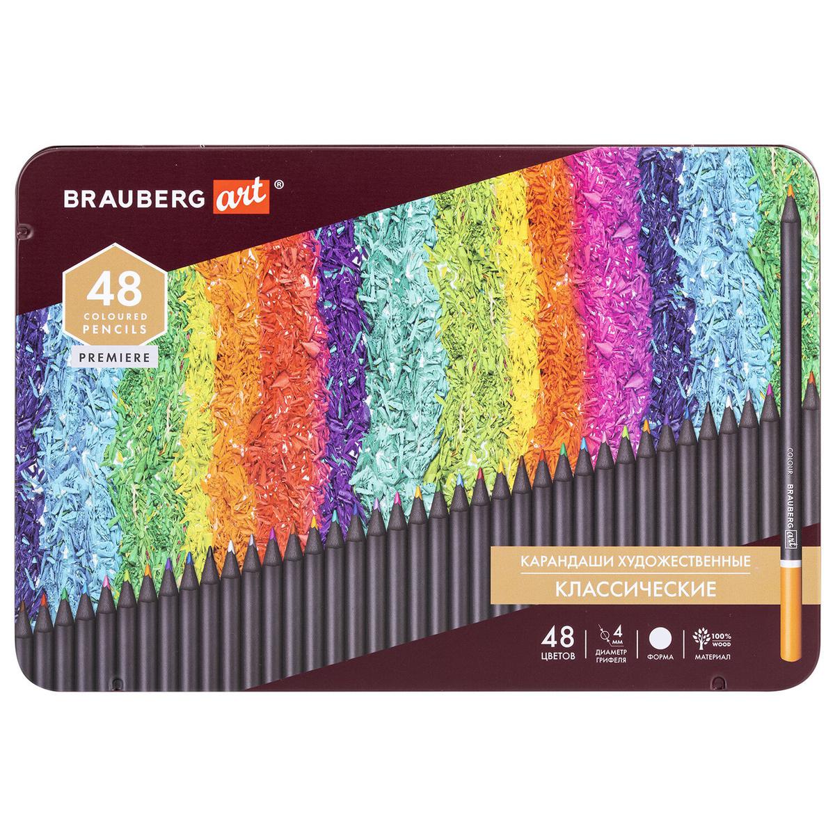 Карандаши 48цв. Brauberg 181694 "ART Premiere" мягкий грифель 4мм, металлический кейс