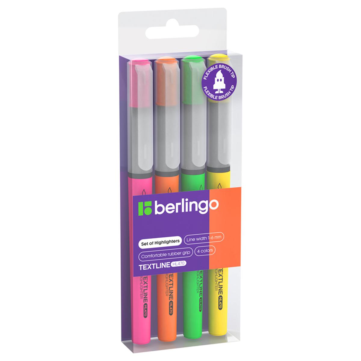 Маркеры 4цв. текстовые Berlingo T4520 "Textline HL470" КИСТОЧКИ 1-6мм 319405
