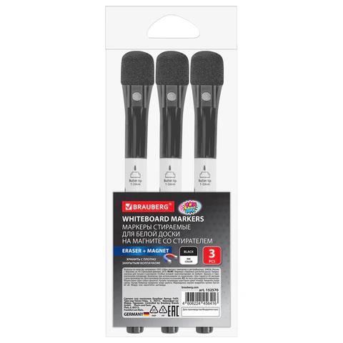Маркеры 3шт. для доски и планера Brauberg 152570 POP-ART 1-2мм, со стирателем и магнитом, черные