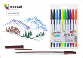Ручки шариковые 10цв. Mazari M-7361-10 "CITY" 0,8мм