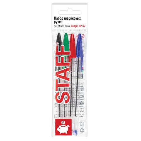 Ручки шариковые 4цв. Staff 143762 "Basic Budget BP-02" 0,5мм